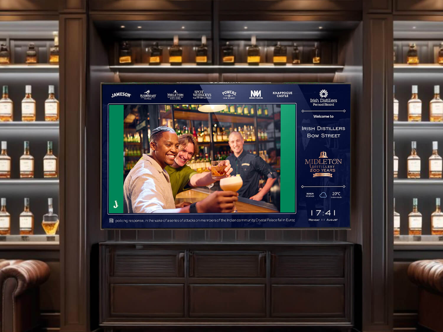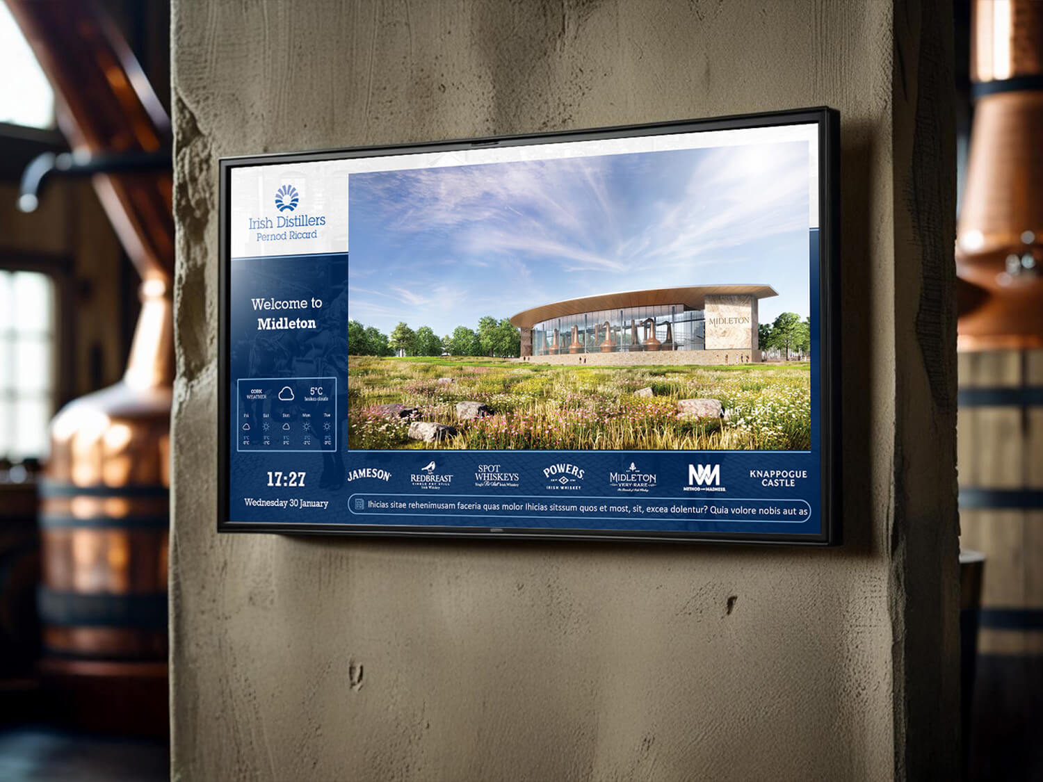 We’ve had the pleasure of working closely with Irish Distillers (part of the Penrod-Ricard Group) for several years now, supporting their digital signage network to ensure vital internal communications and health & safety messaging reach employees across a diverse range of locations—from corporate offices to the heart of their distilleries.